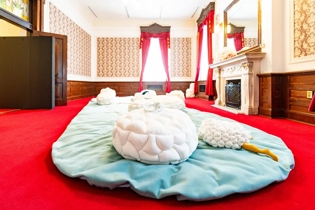 In Yeonghye 通过超越传统功能和媒介障碍的软雕塑探索人类内心世界的互动。她粗糙的手工编织艺术品邀请参观者坐、躺、靠或触摸它们。通过鼓励身体参与,她希望自己的作品能够通过与观众的密切接触和联系提供丰富的感官体验。Miniyu 是韩国第一位ASMR (自发性知觉经络反应)艺术家,她通过ASMR视频为当今现代世界忙碌的人们提供慰藉和情感治疗,这些视频通过视觉、听觉和情感联系来体验。